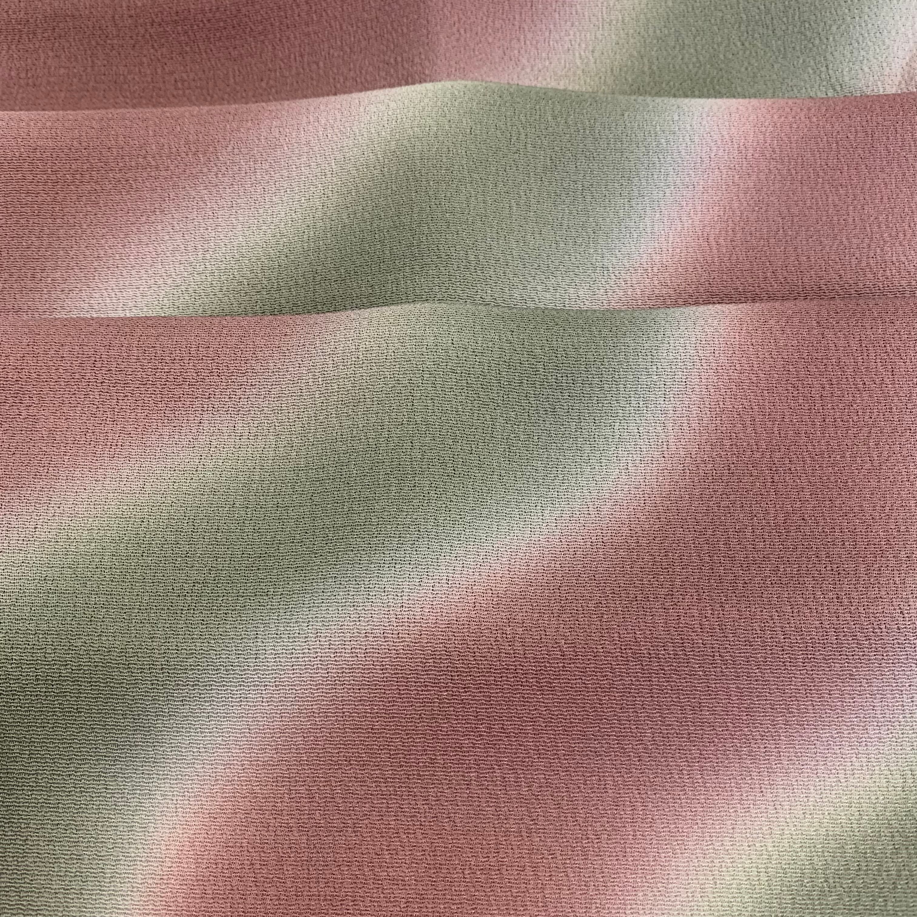 桃色と若草色のような緑色のグラデーションとなり、コーディネートをかっこよく洗練された印象にしてくれる1枚です。